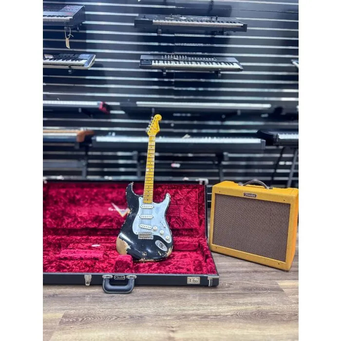 A Fender Stratocaster Custom Shop Limited Edition Preta Usada representa o mais alto padrão de fabricação de guitarras. Cada unidade é meticulosamente construída à mão pelos melhores luthiers da Fender, utilizando materiais premium e técnicas artesanais que garantem qualidade excepcional.