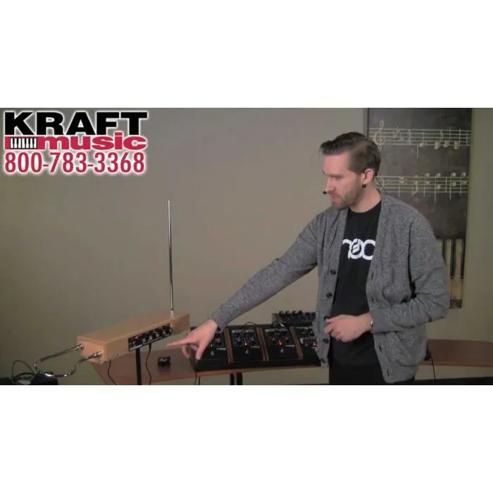 O Moog Etherwave Plus é o mais recente sintetizador da família Theremin da Moog. Ele combina a técnica de execução gestual do Theremin com a versatilidade da síntese analógica. Agora você pode controlar sintetizadores e efeitos enquanto toca o Theremin, ou usá-lo como um controlador de CV autônomo.