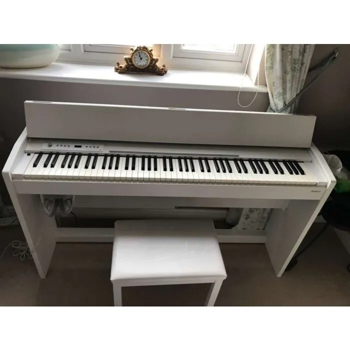Com um visual minimalista e elegante, o F-120 se encaixa perfeitamente em qualquer ambiente, seja ele clássico ou moderno. Seu gabinete branco é sofisticado e discreto, adicionando um toque de estilo ao seu espaço de prática ou apresentação.