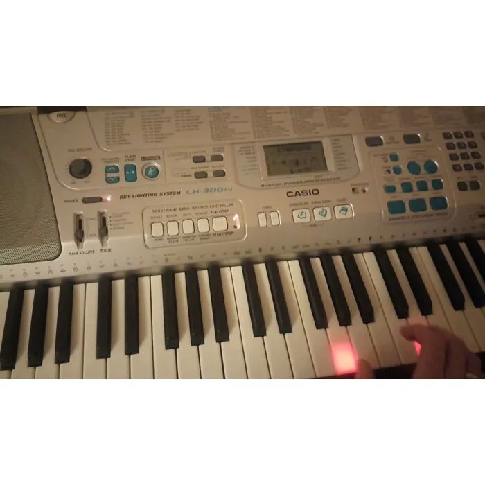 Uma das características mais distintas do Casio LK-300TV é a iluminação das teclas, que auxilia os músicos iniciantes a aprender a tocar de forma mais eficaz. As teclas iluminadas indicam as notas corretas, tornando o processo de aprendizado mais intuitivo e divertido. Além disso, o teclado vem com um cabo de vídeo e é compatível com sistemas de vídeo PAL e NTSC, oferecendo flexibilidade para diferentes configurações de exibição.