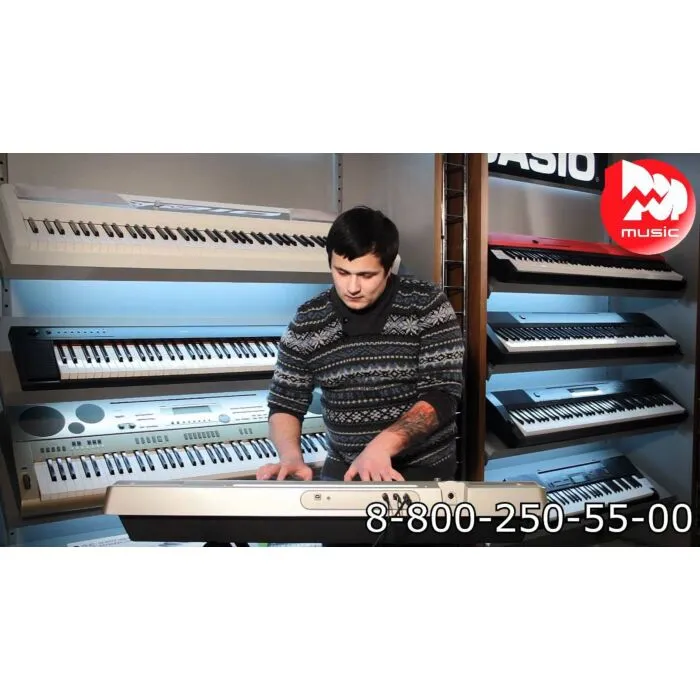 | Especificações | Especificações: Teclado: 61 teclas de tamanho natural Resposta ao Toque: 2 níveis de sensibilidade, desligado Sistema de Som: HL Polifonia Máxima: 32 Timbres: 514 timbres integrados Camada / Divisão: Camada, Divisão Efeitos Digitais: - Reverberação: 4 tipos - Coros: 4 tipos Ritmos / Padrões: 120 ritmos integrados Acompanhamento Automático: - Modos: CASIO Chord, dedilhado, acorde de intervalo completo - Controladores: Iniciar/Parar, Introd., Normal/Preenchimento, Variação/Preenchimento, Sincronismo/Fim Músicas Integradas: 100 (melodias do banco) Expansão de Músicas: Máximo de 10 músicas (até 320 KB no total) Função de Lições: - Lição em três etapas avançada (Interface da lição para TV) - Sistema de pontuação - Dedilhado em áudio (Parte da lição: mão direita, mão esquerda, ambas as mãos) Metrônomo: Compases: 0, 2, 3, 4, 5, 6 Gravador: 2 faixas x 1 música (gravação de performance), 1 música (gravação de lição), um total de aproximadamente 5.200 notas, gravação/reprodução em tempo real Outras Funções: - Conexão de TV - Karaokê na TV: Exibição das letras das músicas na TV (melodias integradas |