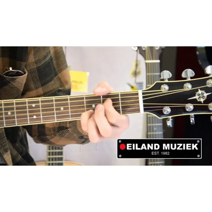 O design elegante deste violão é complementado por materiais de alta qualidade, como o tampo em Solid Spruce, o corpo em Nato e o braço em Nato, que proporcionam durabilidade e resistência. O fingerboard e a ponte em Rosewood adicionam um toque de elegância ao instrumento, enquanto o acabamento em Diecast Chrome (TM-29) dos afinadores confere um visual moderno e sofisticado.
